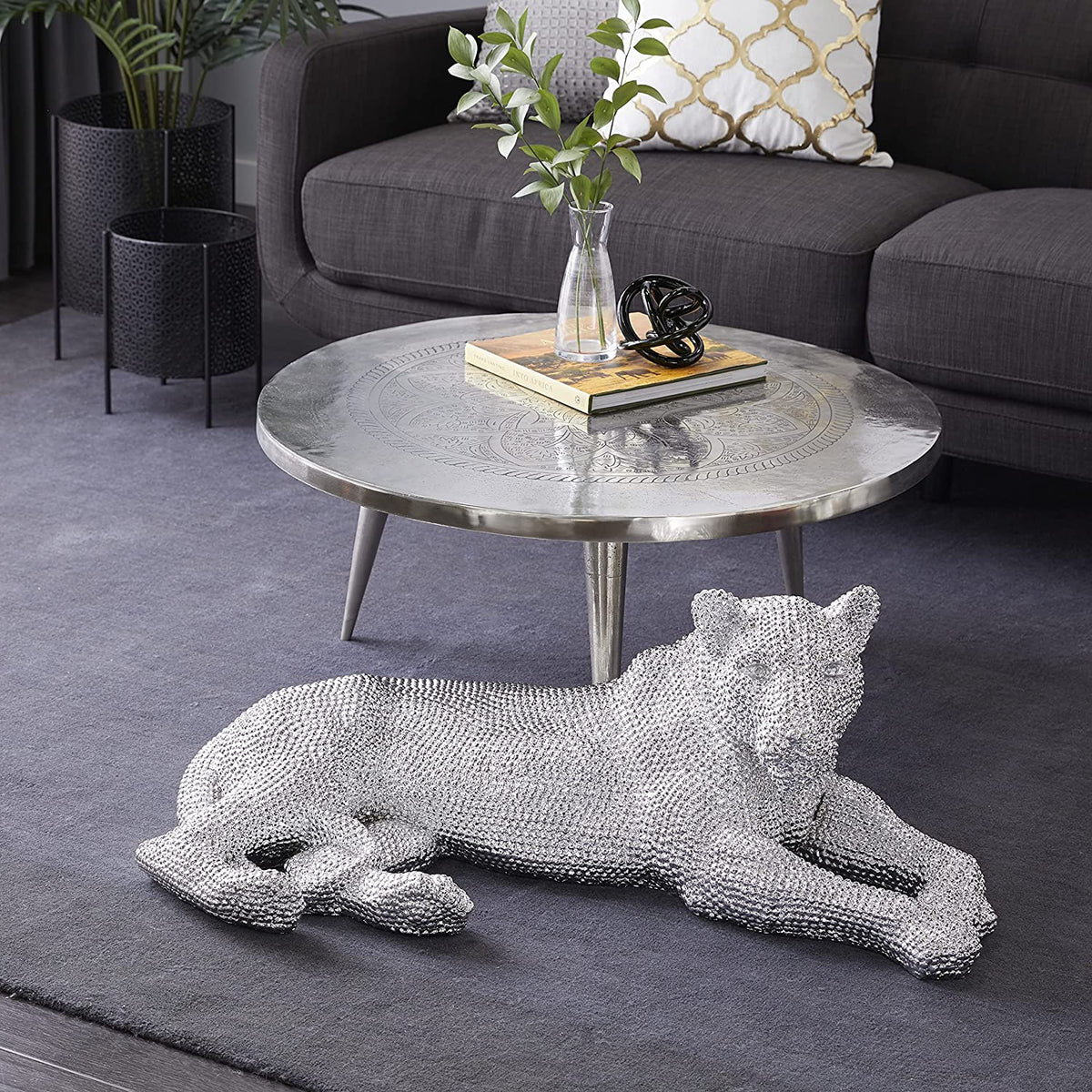 A glam silver exterior with rhinestone attachments are featured in the design.